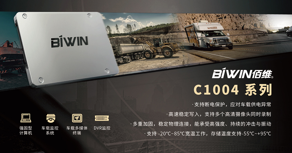 在復雜的運輸環境中,震動大、溫差大、電壓不穩、突發斷電、存儲空間受限都是車載監控存儲器必須一一克服的難題,佰維BIWIN針對這些痛點推出的C1004系列SSD,便充分滿足了物流車載監控的實際應用需求。