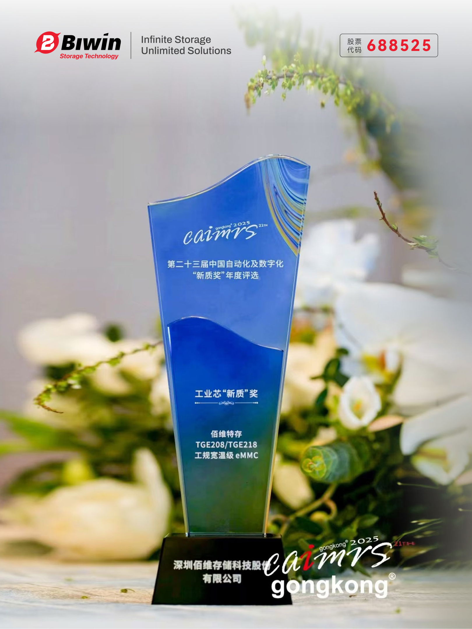 近日,由中國工控網主辦的第二十三屆中國自動化+數字化"新質獎"評選結果正式發布。佰維存儲旗下工業車規存儲品牌——佰維特存憑借其創新研發的【工規寬溫級eMMC】存儲解決方案,成功摘得【工業芯"新質"獎項】殊榮。